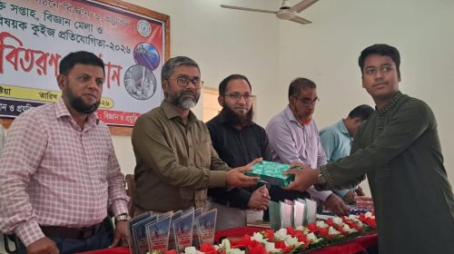 ছবির বিবরণ :মিরপুরে ১০ম বিজ্ঞান অলিম্পিয়াড বিজয়ী মিরপুর নাজমুল উলুম সিদ্দিকীয়া ফাযিল (ডিগ্রী) মাদ্রাসার এম তামিম হাসান প্রধান অতিথির কাছ…