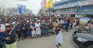 আধিপত্যবাদবিরোধী বিপ্লবী ও জুলাই গণঅভ্যুত্থানের অকুতোভয় যোদ্ধা শরিফ ওসমান হাদিকে নির্মমভাবে হত্যার প্রতিবাদে উত্তাল হয়ে উঠেছে কুষ্টিয়া। এই নৃশংস হত্যাকাণ্ডের সঙ্গে জড়িত খুনিদের দ্রুত গ্রেপ্তার ও দৃষ্টান্তমূলক শাস্তির দাবিতে শনিবার বিকেলে কুষ্টিয়া শহরে বিশাল বিক্ষোভ মিছিল ও গায়েবানা জানাজা অনুষ্ঠিত হয়েছে।