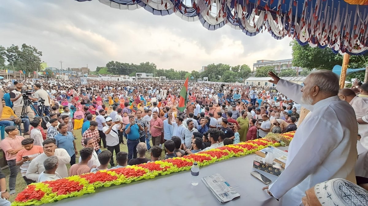 অন্তর্র্বতী সরকারের উদ্দেশে তিনি বলেন, ‘দেশে শান্তি ও সম্প্রীতির পরিবেশ বজায় রাখতে হলে সকল সম্প্রদায়ের নিরাপত্তা ও অধিকার নিশ্চিত করতে হবে। রাষ্ট্রীয় সুরক্ষা ব্যবস্থাকে নিখুঁত রাখতে হবে, যাতে কোন ধরনের উস্কানি বা হামলা সফল না হয়।’উপজেলা বিএনপি’র সভাপতি আশরাফুজ্জামান শাহীনের সভাপতিত্বে ও সাংগঠনিক সম্পাদক এনামুল হক বাবুর সঞ্চালনে বক্তব্য রাখেন, উপজেলা বিএনপি’র সিনিয়র সহ-সভাপতি খন্দকার ওমর ফারুক কুদ্দুস, সাধারণ সম্পাদক খন্দকার টিপু সুলতান, পৌর বিএনপি’র সভাপতি আব্দুর রশীদ, পৌর বিএনপি’র সাবেক সদস্য সচিব আজাদুর রহমান (আজাদ) বিশ্বাস, উপজেলা বিএনপি’র দপ্তর সম্পাদক মারফত আফ্রিদী, প্রচার সম্পাদক বিল্লাল হোসেন, উপজেলা যুবদলের আহবায়ক সুলতান আলী, জেলা ছাত্রদলের সদস্য সচিব খন্দকার তসলিম উদ্দিশ নিশাত, পৌর যুবদলের আহবায়ক সংগ্রাম খান জিল্লু, পৌর বিএনপি’র আহবায়ক কমিটির সদস্য নাসিরুজ্জামান রানা প্রমুখ। সমাবেশ শেষে সাবেক এমপি অধ্যাপক শহীদুল ইসলাম বিএনপি নেতা-কর্মীদের নিয়ে পৌরসভার মধ্যে খন্দকবাড়ীয়া ও হরিতলা পুজা মন্ডব পরিদর্শণ করেন।