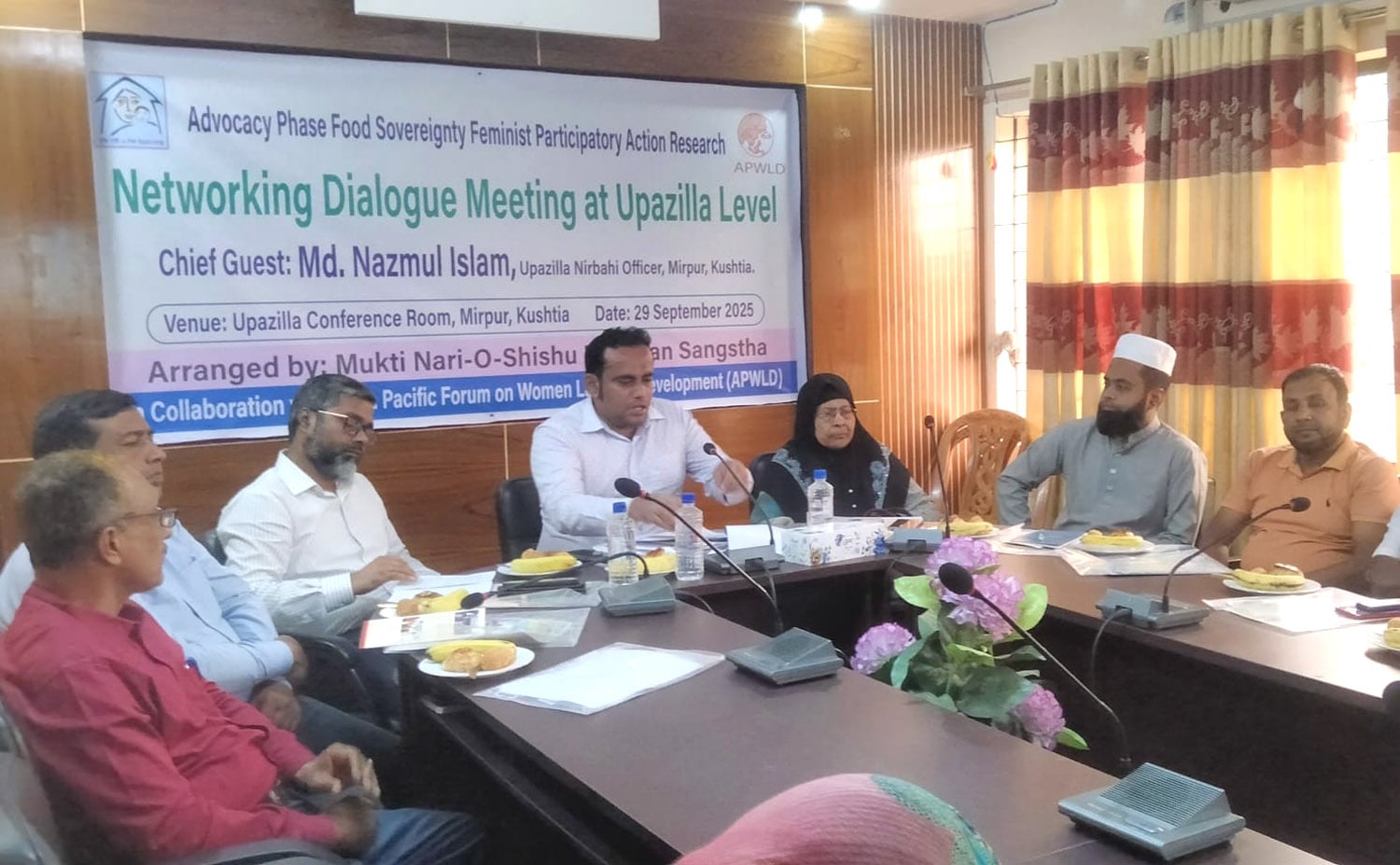 কুষ্টিয়ায় মিরপুরে তামাক চাষ নিরুৎসাহিতকরণ ও নিরাপদ খাদ্য উৎপাদনে উপজেলা পর্যায়ে নেটওয়ার্ক মিটিং অনুষ্ঠিত হয়েছে। মুক্তি নারী ও শিশু উন্নয়ন সংস্থার উদ্যোগে এবং এশিয়ান প্যাসিফিক ফোরাম অন উইমেন, ল অ্যান্ড ডেভেলপমেন্টের (এপিডাব্লিউএলডি) সহযোগিতায় সোমবার সকালে জেলার মিরপুর উপজেলা সভাকক্ষে এ মিটিং অনুষ্ঠিত হয়। মুক্তি নারী ও শিশু উন্নয়ন সংস্থার নির্বাহী পরিচালক বীর মুক্তিযোদ্ধা মমতাজ আরা বেগমের সভাপতিত্বে অনুষ্ঠানের প্রধান অতিথি ছিলেন উপজেলা নির্বাহী কর্মকর্তা নাজমুল ইসলাম। মুক্তি নারী ও শিশু উন্নয়ন সংস্থার প্রোগ্রাম কোর্ডিনেটর জায়েদুল হক মতিনের পরিচালনায় এতে বিশেষ অতিথি ছিলেন উপজেলা সহকারী কমিশনার (ভূমি) কাজী মেশকাতুল ইসলাম, উপজেলা কৃষি কর্মকর্তা আব্দুল্লাহ আল মামুন, উপজেলা সমাজসেবা কর্মকর্তা জামশেদ আলী, উপজেলা যুব উন্নয়ন কর্মকর্তা বদিউজ্জামান, উপজেলা মহিলা বিষয়ক কর্মকর্তা তমান্নাজ খন্দকার, উপজেলা বন কর্মকর্তা জুয়েল আহমেদ, মিরপুর প্রেসক্লাবের সভাপতি মারফত আফ্রিদী ও সাধারণ সম্পাদক রাশেদুজ্জামান রিমন। এ সময়ে মুক্তি নারী ও শিশু উন্নয়ন সংস্থার প্রকল্প সমন্বয়কারী উম্মে সালমা, ইয়্যাং রিসার্চার শিবলী আক্তার প্রমুখ উপস্থিত ছিলেন। সভায় অতিথিবৃন্দ বিষবৃক্ষ তামাকের ক্ষতিকর দিক এবং তামাকের বিকল্প ফসল উৎপাদনে করণীয় বিষয়ে বিস্তারিত আলোচনা করেন।