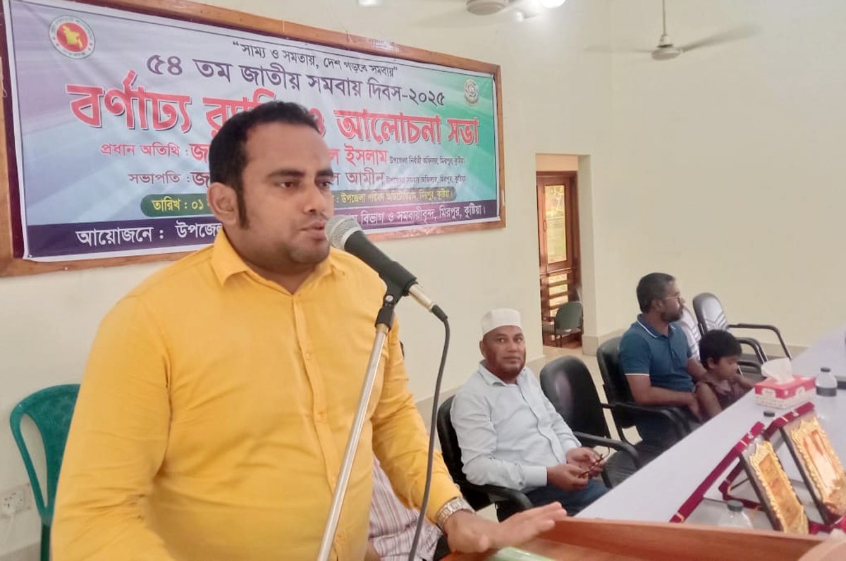 কুষ্টিয়ার মিরপুরে যথাযোগ্য মর্যাদা ও উৎসবমুখর পরিবেশে পালিত হলো ৫৪তম জাতীয় সমবায় দিবস ২০২৫। শনিবার (১ নভেম্বর) সকাল ১০টায় উপজেলা পরিষদ চত্বর থেকে বর্ণাঢ্য র্যালি বের হয়ে মিরপুরের গুরুত্বপূর্ণ সড়ক প্রদক্ষিণ করে। র্যালি শেষে উপজেলা মিলনায়তনে এক আলোচনা সভার আয়োজন করা হয়।