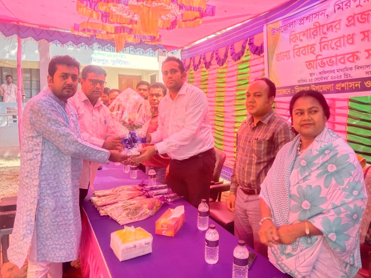 কুষ্টিয়ার মিরপুরে উপজেলা প্রশাসন ও কাকিলাদহ মাধ্যমিক বিদ্যালয়ের আয়োজনে কিশোরীদের প্রজনন স্বাস্থ্য ও বাল্য বিবাহ নিরোধ সংক্রান্ত সভা এবং অভিভাবক সম্মেলন অনুষ্ঠিত হয়েছে। বৃহস্পতিবার দুপুরে কাকিলাদহ মাধ্যমক বিদ্যালয় প্রাঙ্গণে এ সভা অনুষ্ঠিত হয়। অনুষ্ঠানে প্রধান অতিথি’র বক্তব্যে উপজেলা নির্বাহী অফিসার নাজমুল ইসলাম বলেন, বাল্য বিবাহ বন্ধে আমাদের সামাজিক আন্দোলন গড়ে তোলা উচিত। বাংলাদেশে বাল্য বিবাহ একটি মারাত্মক সমস্যা। বাল্য বিবাহ নিরোধ আইন অনুসারে ছেলেদের বিবাহের বয়স নুন্যতম একুশ এবং মেয়েদের বয়স আঠারো হওয়া বাধ্যতামূলক। অশিক্ষা, দারিদ্র, নিরাপত্তাহীনতা ও সামাজিক নানা কুসংস্কারের কারনে বাল্য বিবাহ হয়ে আসছে। নারী শিক্ষার অগ্রগতি ব্যাহত হওয়া ছাড়াও বাল্য বিবাহের কারনে মাতৃমৃত্যুর ঝুঁকি বৃদ্ধি পাচ্ছে। অপ্রাপ্তবয়স্ক মা প্রতিবন্ধী শিশু জন্মদান করতে পারে। এছাড়া এতে গর্ভপাতের ঝুঁকিও বৃদ্ধি পায়। বাল্য বিবাহের ফলে বিবাহ বিচ্ছেদের আশংকা তৈরী হওয়া ছাড়াও নানা পারিবারিক অশান্তি দেখা দেয়। বাল্য বিবাহ নিরোধ আইনটি বাস্তবায়নে আমাদের সকলের ব্যাপক প্রচার/প্রচারনা করা প্রয়োজন।