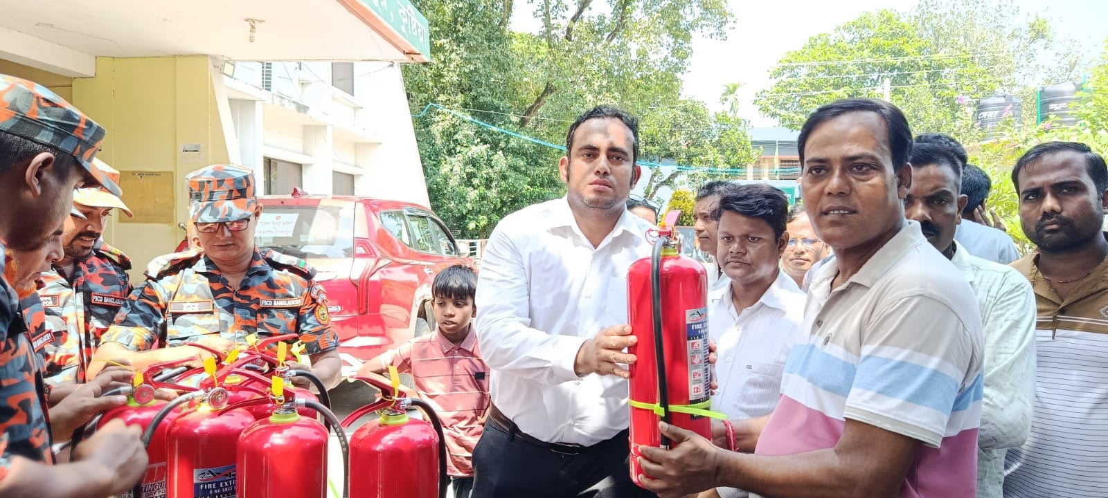 কুষ্টিয়ার মিরপুর উপজেলার সকল পূজা মন্ডপে অগ্নি নির্বাপক যন্ত্র ও আগুন নিয়ন্ত্রক বিষয়ক মহড়া অনুষ্ঠিত হয়েছে। বৃহস্পতিবার সকালে উপজেলা নির্বাহী অফিসার নাজমুল ইসলাম উপজেলার সকল পূজা মন্ডপে এ অগ্নি নির্বাপক যন্ত্র বিতরণ করেন। এসময় উপজেলা প্রকল্প কর্মকর্তা মাহফুজুর রহমান, মিরপুর ফায়ার সার্ভিসের ষ্টেশন লিডার রফিকুল ইসলাম, ফায়ার ফাইটার মাহবুবুর রহমান, সহকারী আসাদুল ইসলাম, পূজা মন্ডপের প্রতিনিধি আনন্দ কুমার দেবনাথ, শ্যামল দত্ত প্রমুখ উপস্থিত ছিলেন।এব্যাপারে নাজমুল ইসলাম বলেন, বিভিন্ন পূজা মন্ডপে অগ্নি নির্বাপক যন্ত্র বিতরণ একটি গুরুত্বপূর্ণ পদক্ষেপ, যা শারদীয় দুর্গাপূজা সুষ্ঠু ও শান্তিপূর্ণভাবে উদযাপনের জন্য বিশেষ সহায়ক হবে। সরকার ও স্থানীয় প্রশাসন পূজা উদযাপন কমিটির সাথে সমন্বয় করে প্রতিমা নির্মাণ, বিসর্জন এবং মন্ডপের নিরাপত্তাসহ সব ধরনের ব্যবস্থা জোরদার করার পাশাপাশি অগ্নি নিরাপত্তা নিশ্চিত করতে অগ্নি নির্বাপক যন্ত্রের মতো প্রাাথমিক ব্যবস্থা রাখলে দুর্ঘটনা রোধে সহায়ক হবে।